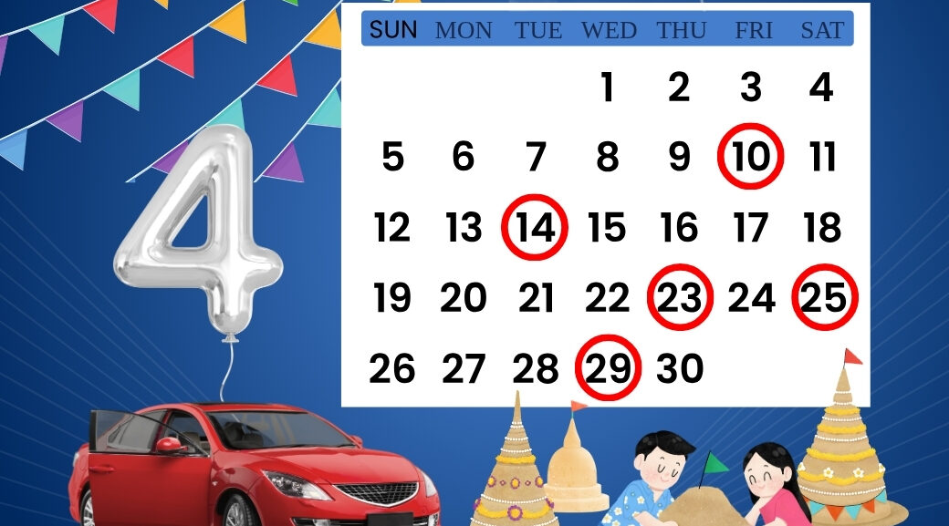 ฤกษ์ออกรถประจำเดือนเมษายน 2569